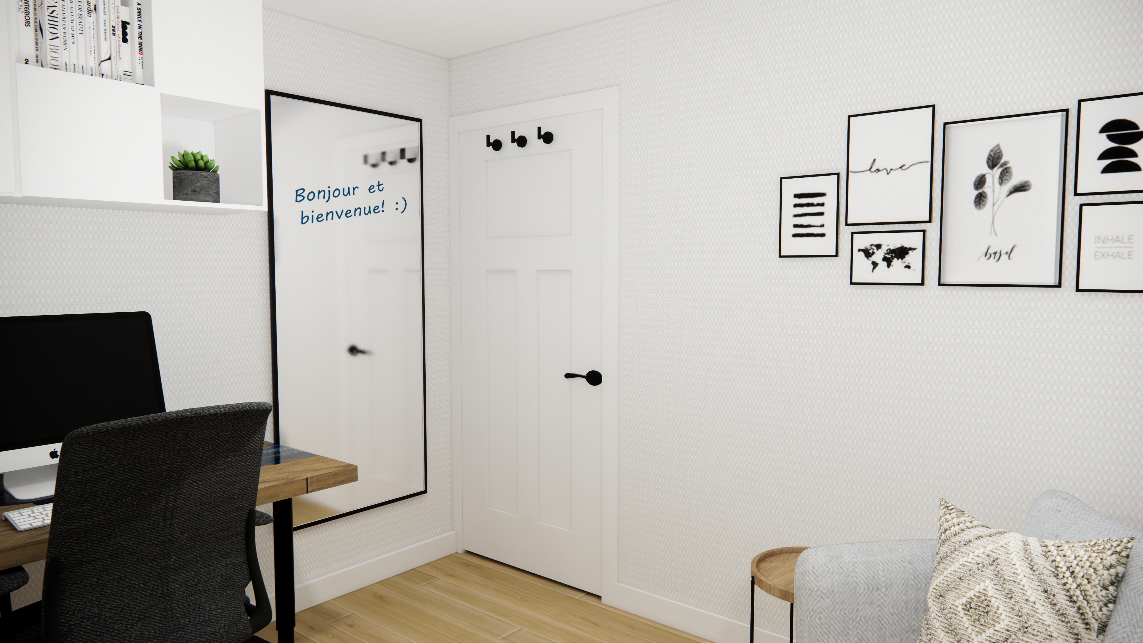 Ici le mandat était de configurer un bureau à la maison qui permettrait d’y recevoir des clients.